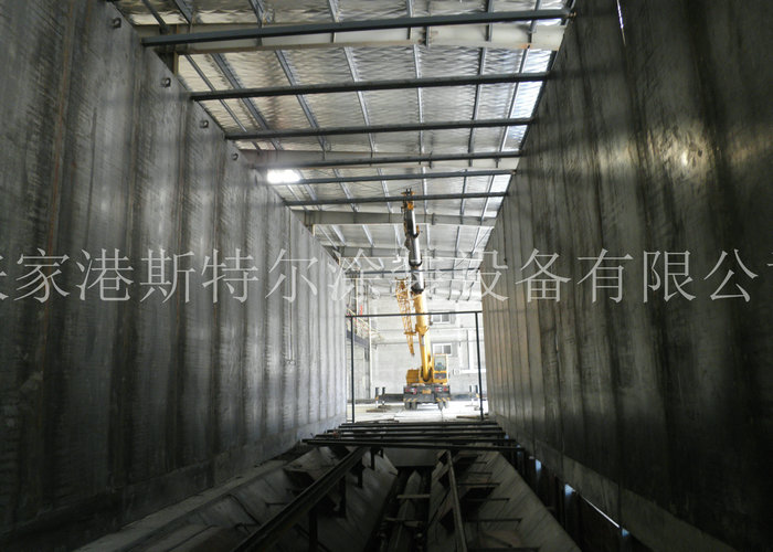 1)、主機噴砂室體為全封閉鋼結構,其構架由型材制作,外覆復合彩鋼板,現場螺栓連接,內掛橡膠護板,襯板為4mm鋼板。